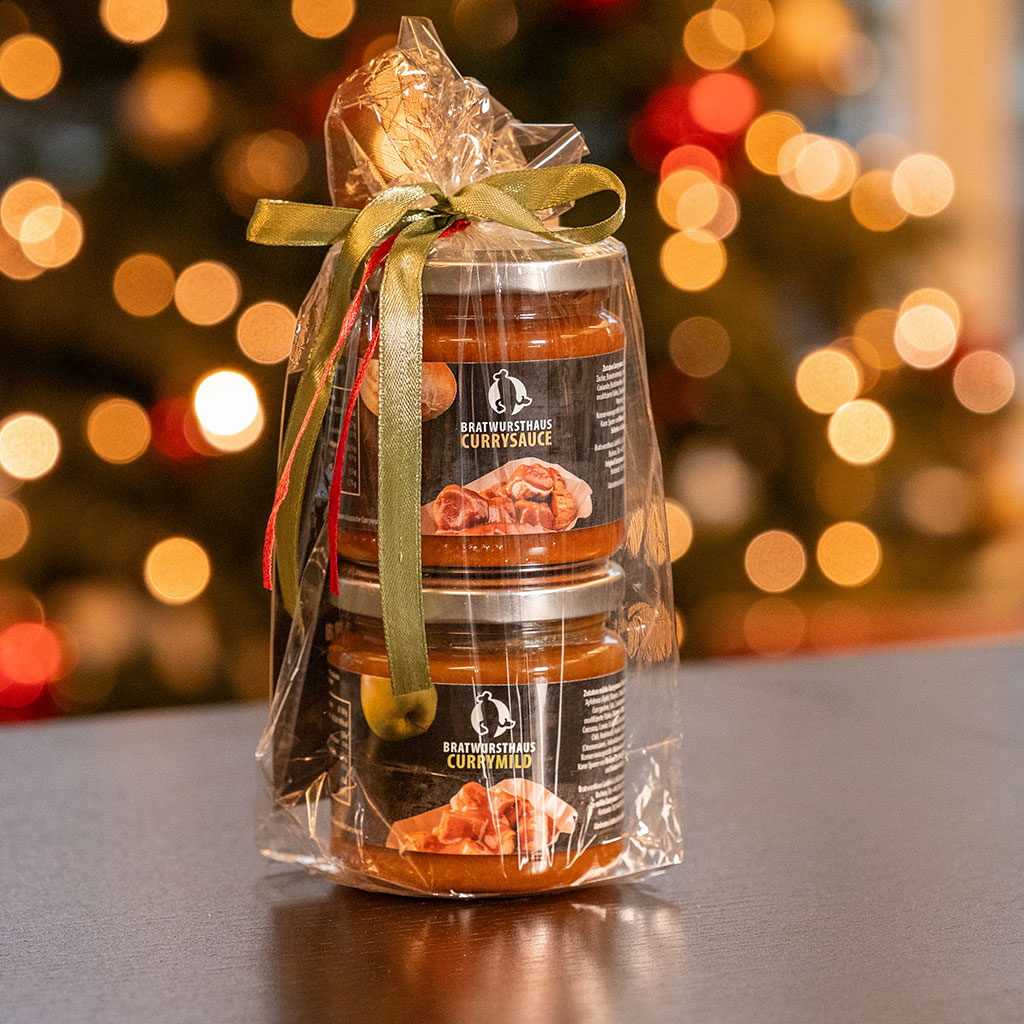 Der Blumenstrauß als Mitbringsel erfreut heute weit weniger als ein originelles, nützliches und vor allem leckeres Geschenk vom Bratwursthaus. Um nicht mit leeren Händen bei Freunden und Verwandten anzukommen, haben wir die passende Geschenkidee zusammengestellt - Je ein 200 ml Glas unserer legendären Currysauce sowie unserer Curry MILD und der luxuriöse Edelstahlpieker ergeben ein kleines, aber edles Geschenk.
