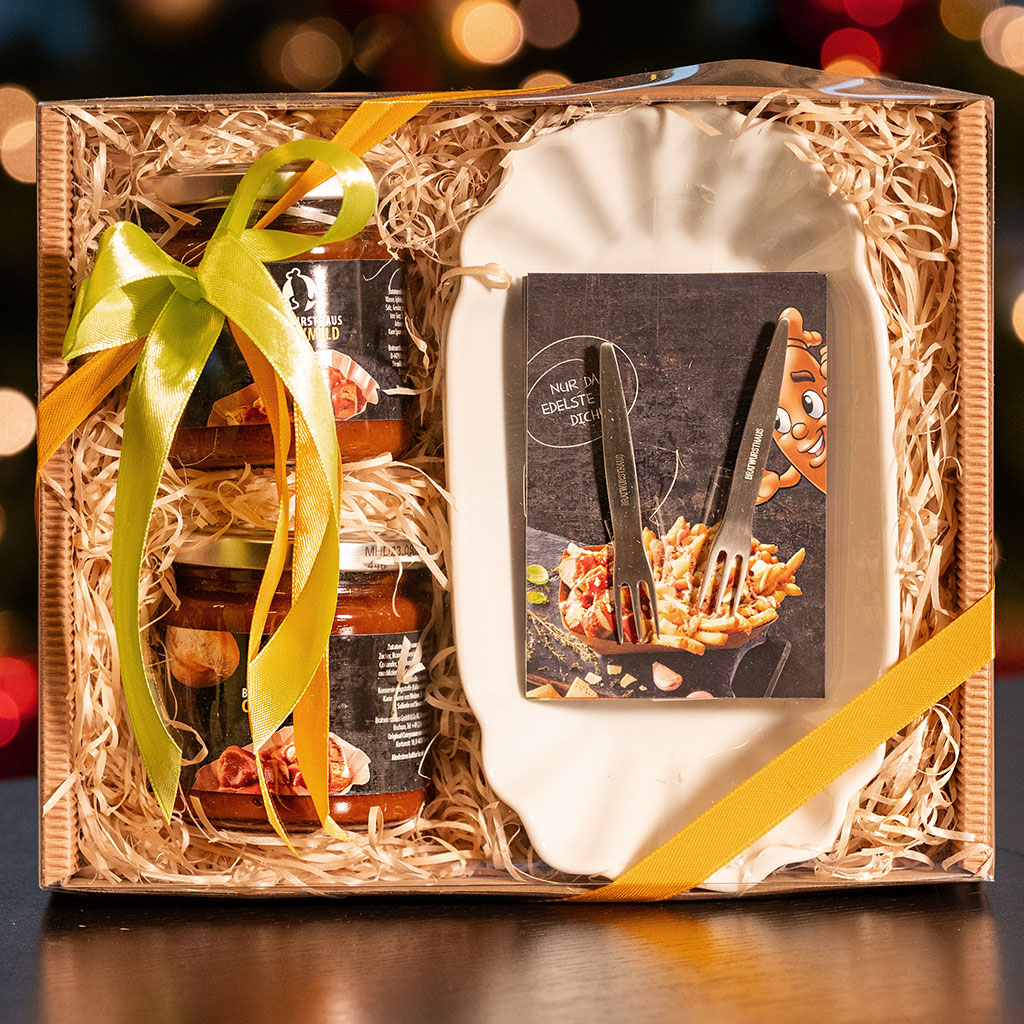 Das optimale Geschenk für einen Zweierhaushalt, da bekommt jeder direkt seine eigene Schale, seinen eigenen Edelstahlpieker und hat mit Glück seine eigene Sauce oder teilt die original Currysauce sowie die Curry MILD gerecht mit seinem Partner. Schalen und Pieker eignen sich übrigens nicht nur zum Servieren einer leckeren Currywurst. Auch kleine Beilagen wie Käsewürfel, Chips, Oliven, Weingummi kommen in den Pozellanschalen schön zur Geltung und laden zum Naschen ein.