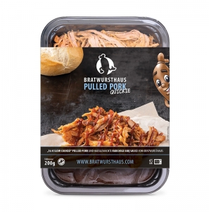 Seit 2020 eines der beliebtesten Produkte an unserem Imbiss. Jetzt auch für zuhause erhältlich. 16 Stunden, langsam gegaartes Schweinefleisch mit würziger Barbecue Sauce.
