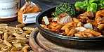 Ein herzhafter Pfannkuchen mit…Bratwurst Nudelpfanne